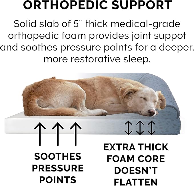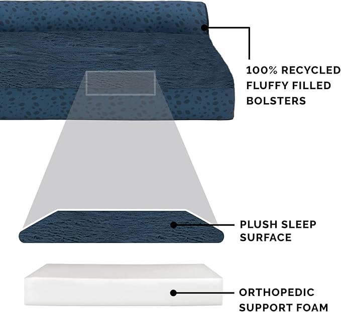 - EASY ON JOINTS: The dense and sturdy solid orthopedic foam base provides superior comfort and greater support for dog breeds of all sizes; fluff-filled bolsters support the neck, back, hips, and joints to help ease discomfort and promote restful sleep