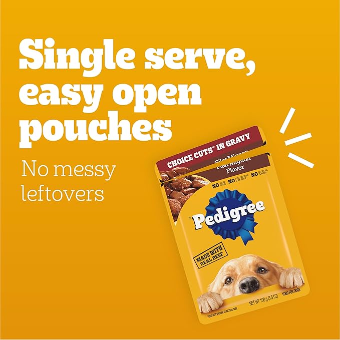 - Made With Real Meat: Pedigree Choice Cuts In Gravy Adult Soft Wet Dog Food Variety Pack is made with real chicken or real beef