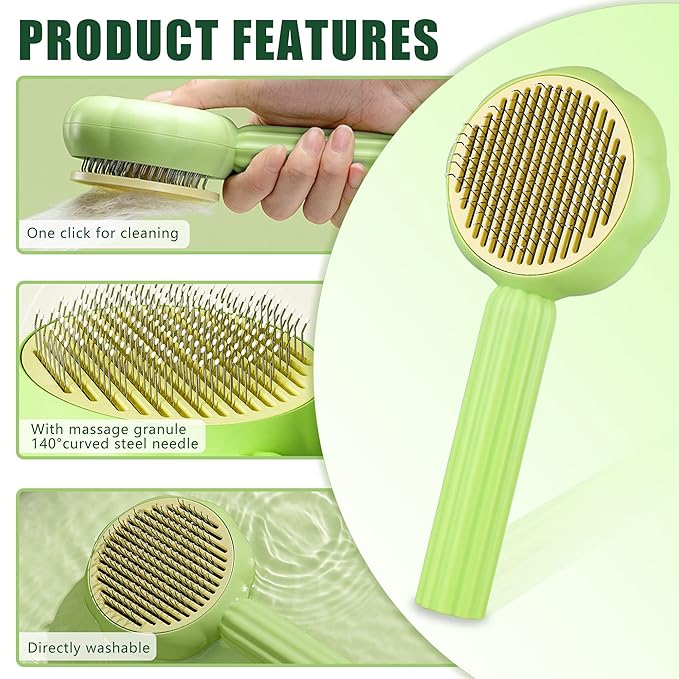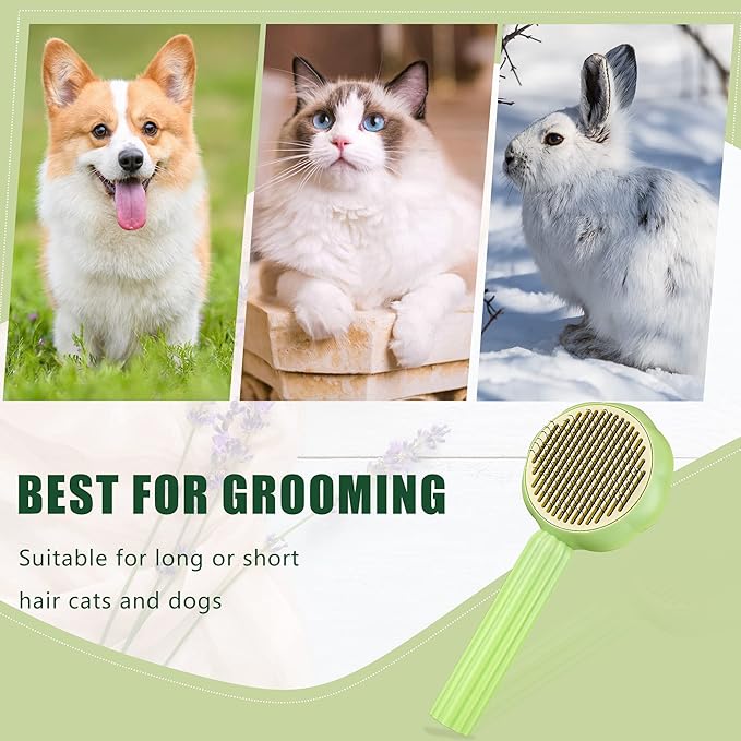 METREE Cat Hair Brush, Self Cleaning Pet Slicker Brush with Release Button, Grooming Brush for Shedding, Long or Short Haired Cats Dogs (Lime Green)