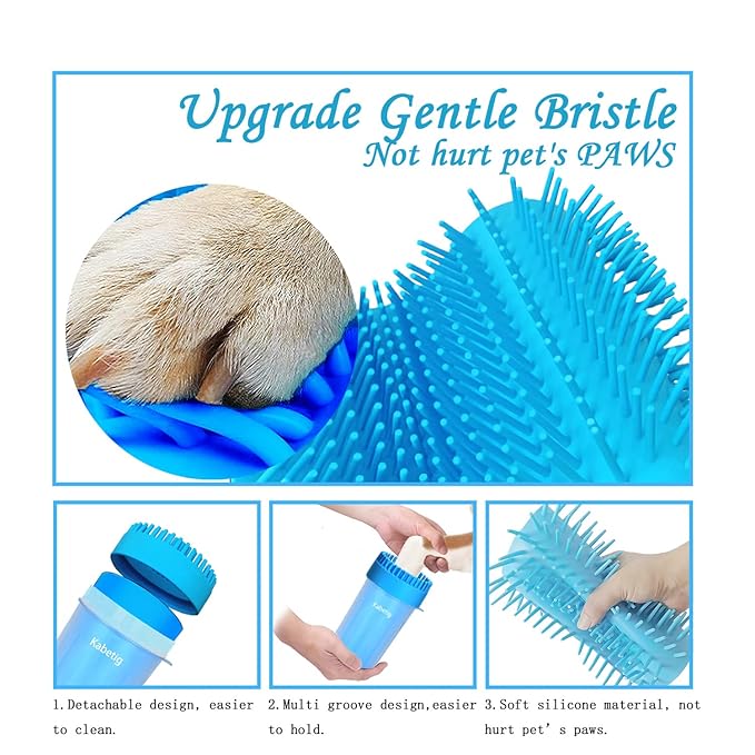 - 【 UPGRADE 2 IN 1 DESIGN】This upgrade dog foot washer with soft silicone bristles,Not only can be used to clean your pet's dirty paws effectively and quickly ,But also you can use it as a brush for grooming and bathing when top round brush be detached. (NOTE: Comes with a pet bath brush.)