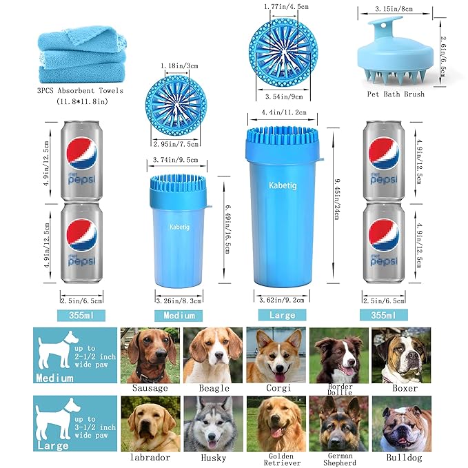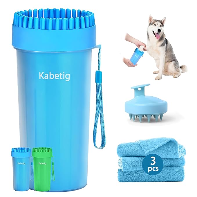 - 【 PORTABLE AND LIGHTWEIGHT PAW CLEANER】Keep it at your front/back door for easy access when coming in. The size of paw cleaner for large dogs: (9.45*4.4*4.4IN) . It is easy to carry. the large paw washer is pet's good partner when walking and hiking. Hanging around your pet's neck is also a good choice
