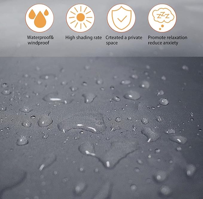 - Heavy duty material:Our dog crate cover is made of heavy duty 600D polyester,which is sturdy and waterproof,blackout,insulated from cold winds,blocks most direct sunlight,and provides good air permeability.Both indoor or outdoor can be use