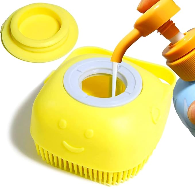 Sin American Dog Cat Bath Brush Comb Silicone Rubber Dog Grooming Brush Silicone Puppy Massage Brush Hair Fur Grooming Cleaning Brush Soft Shampoo Dispenser(Yellow)
