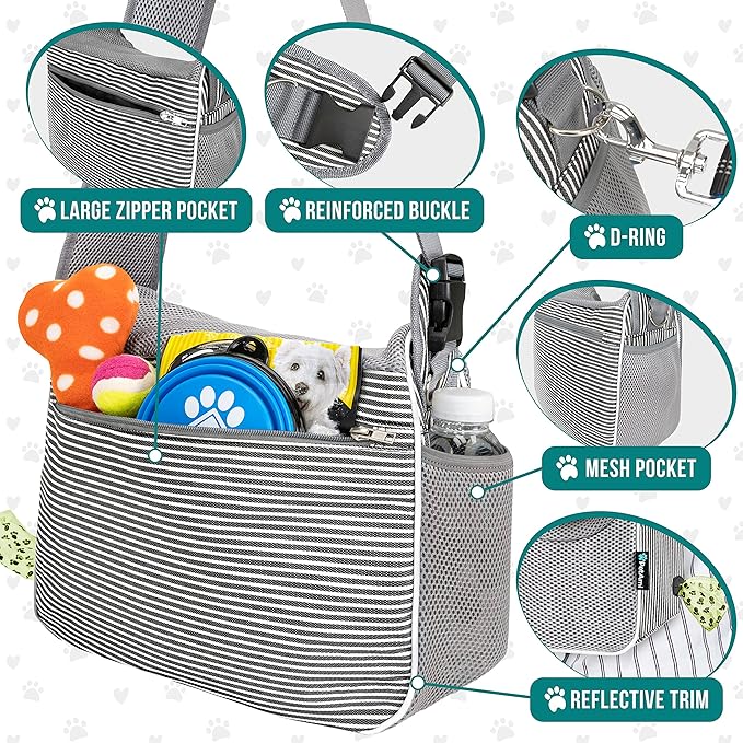 PetAmi Small Dog Sling Carrier, Soft-Sided Crossbody Puppy Carrying Purse Bag, Adjustable Sling Pet Pouch to Wear Medium Cat Travel, Dog Bag for Traveling Breathable, Poop Bag Dispenser, Stripe Black