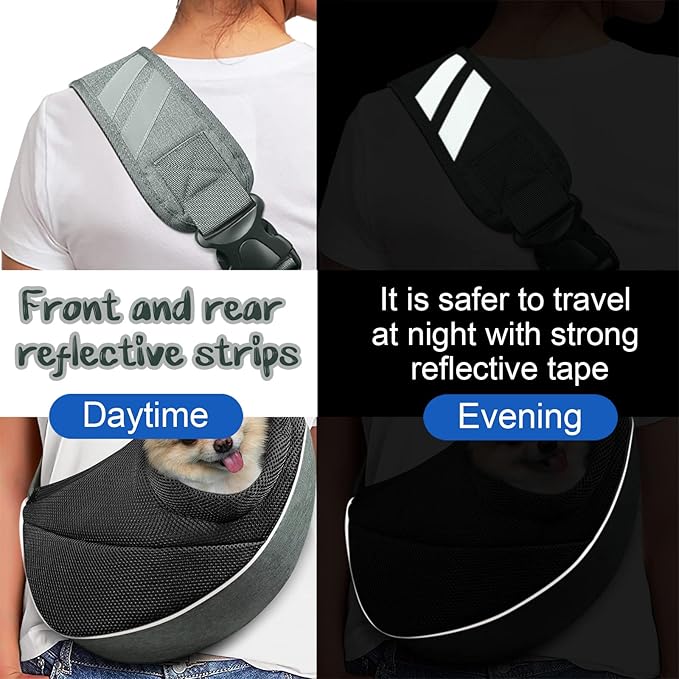 - REFLECTIVE DESIGN : Both the front and back of AOFOOK dog body carrier have reflective design. When you are walking at night or in tunnels with poor lighting, it is easy for drivers to find you, which can effectively avoid traffic accidents.There is a pocket on the front of the shoulder strap to store small dog stuff for small dogs ,cellphone,keys,etc. You can use AOFOOK pet carrier bag as a dog front carrier or a dog carrying backpack.AOFOOK dog slings allow you to travel safely.