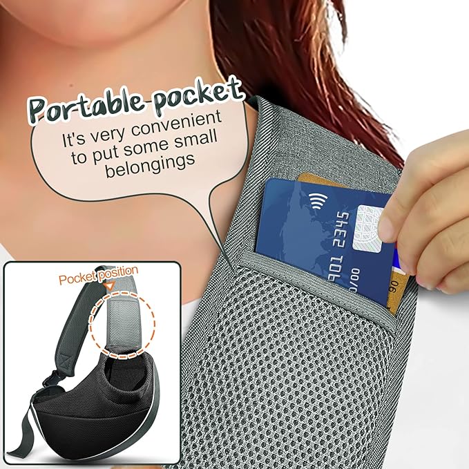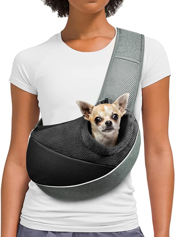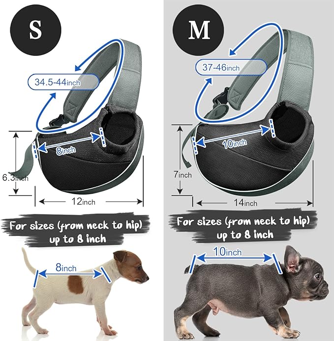 Dog Cat Sling Carrier, Adjustable Padded Shoulder Strap, with Mesh Pocket for Outdoor Travel (S - Up to 6 lbs, Black - Black)