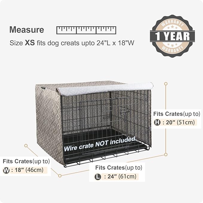 - Only Cover, without Crate - Dimension: 24 x 18 x 20 inches, universal fit for most brand 24-inch standard wire crate. Compatible with 1-door, 2-door, and 3-door wire dog crates.