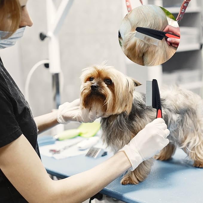 Pet Steel Combs Dog Cat Comb Tool, Dandruff Comb, Multifunction Stainless-Steel Fine-Tooth Grooming Comb Cat Dog Pet Grooming Scalp Effectively Get Rid of Hair Nits (Grooming Comb)