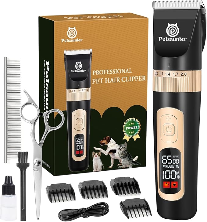 - 【Easy to use】Our pet clipper is perfect for beginners. With a one-click start and easy-to-adjust settings, it's a breeze to use. Cordless and rechargeable, you can groom your pet anywhere. Its sharp blades make quick work of thick coat, and ensure a smooth cut. Give your pet a quick trim or full makeover with ease!
