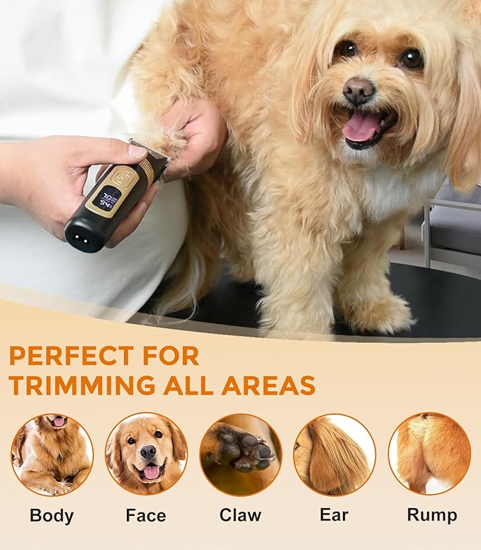 - 【Easy to use】Our Dog Grooming Kit is perfect for beginners. With a one-click start and easy-to-adjust settings, it's a breeze to use. Cordless and rechargeable, you can groom your pet anywhere. Its sharp blades make quick work of thick coat, and ensure a smooth cut. Give your pet a quick trim or full makeover with ease!