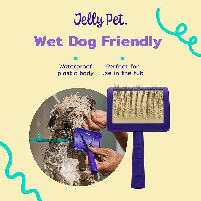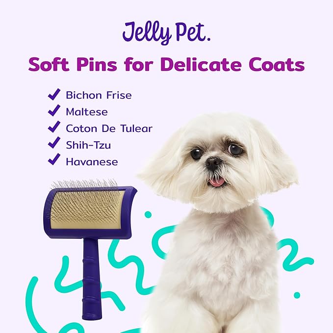 Jelly Pet Universal Slicker Brush for Dogs, Dog Grooming Brush, Remove Tangles and Dead Undercoat, Tuffer Than Tangles Maltese Shi-Tzu Poodle Bichon, Soft Pins, Purple, Small