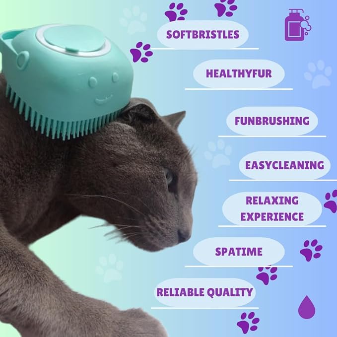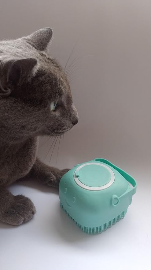 - BRUSH AND DISPENSER AT THE SAME TIME It is a bath brush with a built-in shampoo or soap dispenser, easy to use, just remove the lid, add a shampoo solution with water, place the lid, shake, squeeze a little to gradually dose on the skin. your pet and massage