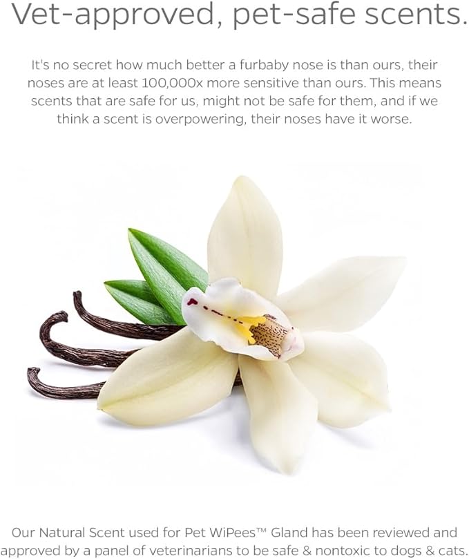 - VET-APPROVED, PET-SAFE SCENTS: When there are only 8 scents in the world that are safe for dogs, and even less for cats, we knew we had to have the safest scents that furbabies wouldn't turn their nose up at. Our scents have been reviewed and approved by a panel of veterinarians to be safe, nontoxic, and non-irritating for both dogs and cats. Just enough in our formulas to smell good, the scents in these butt wipes for dogs are not enough to upset sensitive sniffers.