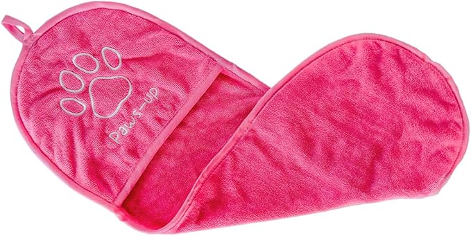 - Another benefit is the super absorbent material easily dries your pets coat and paws after a bath or coming in from the elements. The two-pocket design is also beneficial when lathering and washing your pet thus giving you control over the process. Whether cleaning paws, bathing or drying your pet the multi-functional Paws Up towel is your solution.