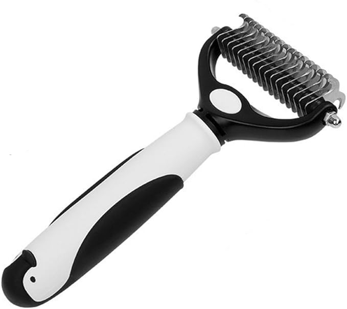 - 🐧Dog Rake Brush For Shedding: Start with 9 teeth side for stubborn mats and tangles and finish with 17 teeth side for thinning and deshedding. Achieve faster and more professional dematting and grooming results.