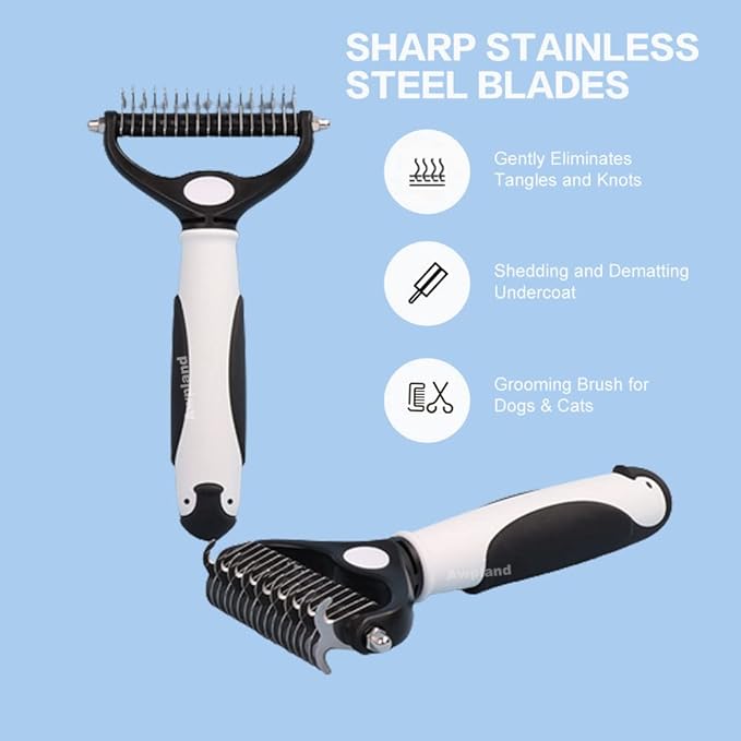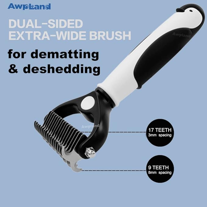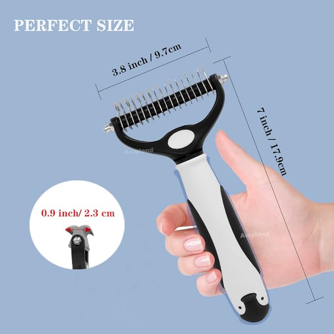 - 🐧One Brush Fit Most Pets: The awpland dog combs for grooming matting supplies can work on large dogs, medium dogs, small dogs & even cats with extra long, super thick hair. Perfect solution for dogs and cats with thick fur or dense double coat care.