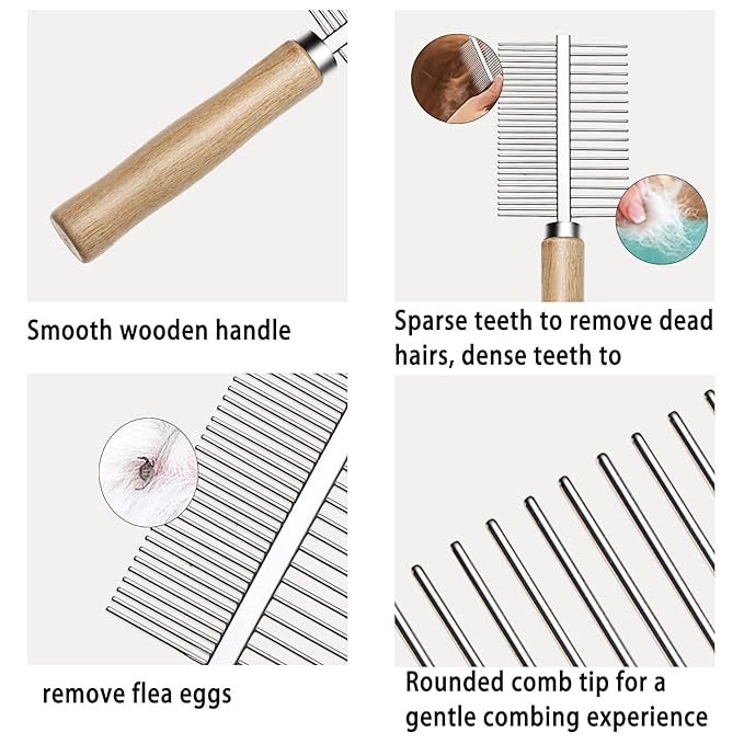 - 【2-in-1 Long Hair Pet Grooming Set】- Please recognize the seller Tsxurepaw. lf you want to maximize the fluffiness of your pet's coat, but struggle with the tangle-prone coat of large dogs, the Thick Coat Pet Grooming Kit can help! This grooming set includes a wide tooth rake comb and a dual-density open knot comb, ideal for opening tangles, and combing through the fluffy coats of medium and largedogs and cats.