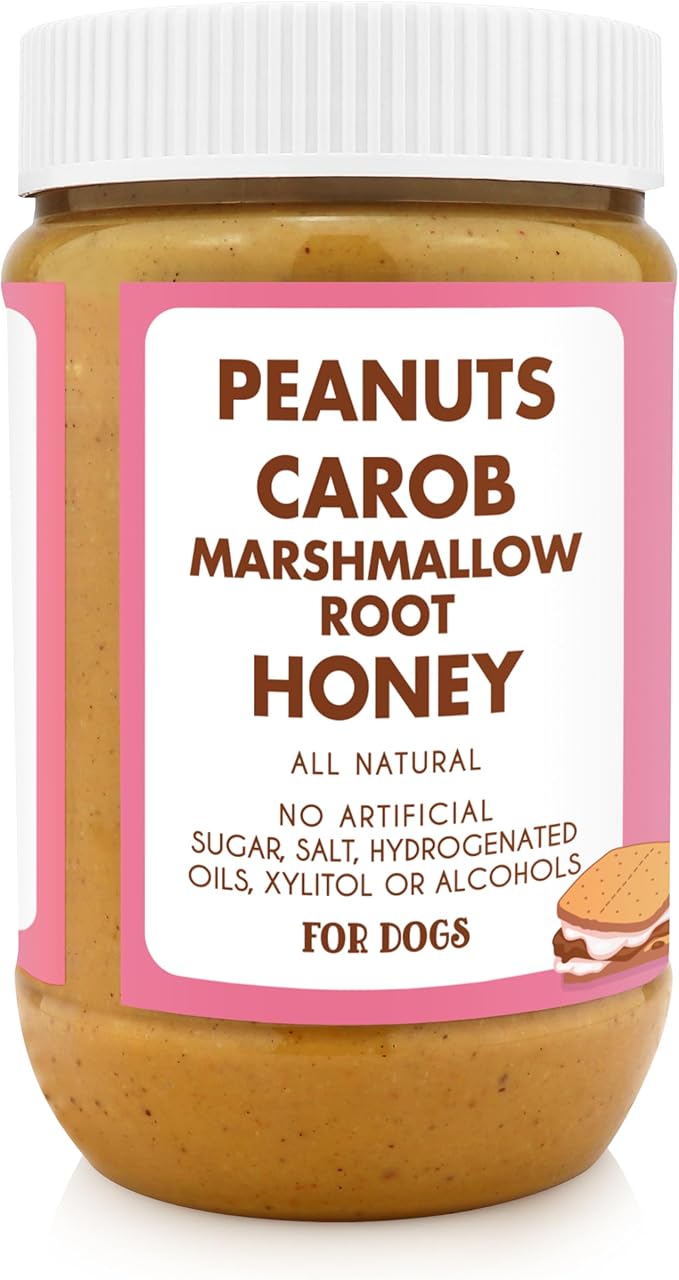 BUDDY BUDDER Gimme S'Mores, 100% Natural Dog Peanut Butter, Healthy Peanut Butter Dog Treats, Stuff in Toy, Dog Pill Pocket, Made in USA, (17 oz Jars)