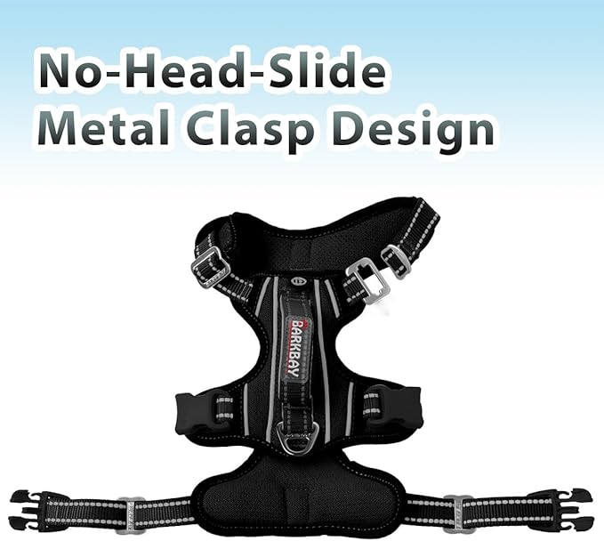 BARKBAY No Pull Dog Harness 3 Buckles Large Reflective Dog Harness with Front Clip and Easy Control Handle for Walking Training Running with ID tag Pocket(Black,L)