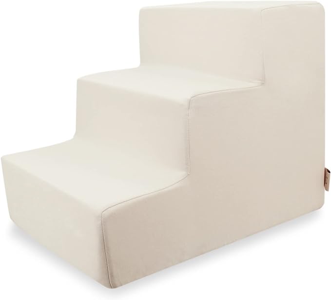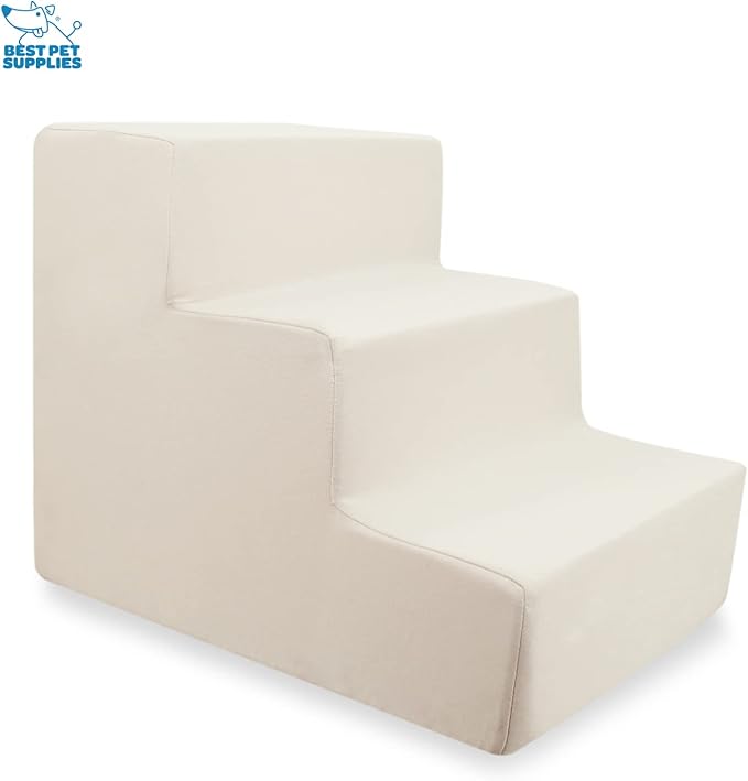 Best Pet Supplies Dog Stairs for Small Dogs & Cats, Foam Pet Steps Portable Ramp for Couch Sofa and High Bed Non-Slip Balanced Indoor Step Support, Paw Safe No Assembly - Ivory, 3-Step