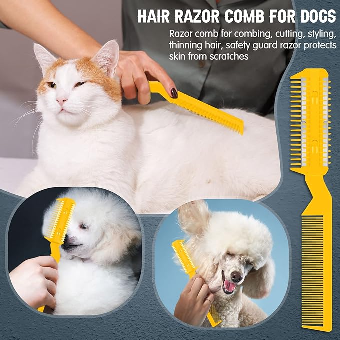 - Stylish and Simple: with classic color and double uses, dog grooming razor comb is really a stylish razor comb tool for pets, nicely protecting pet's skin from scratches while trimming