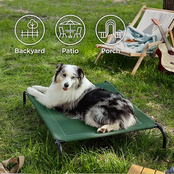 - Indoor & Outdoor Use: Weather resistant, the 8" raised breathable mesh cot works great indoors and outside. Keep your pup dry and comfortable in the backyard, on the patio or porch, next to the pool, or while camping.