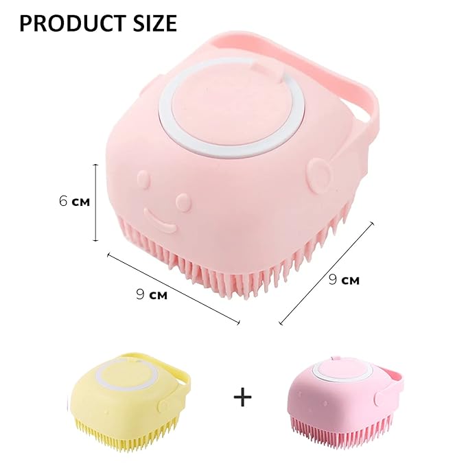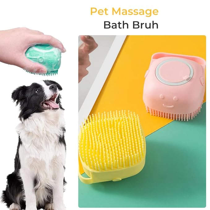 Dog Bath Brush Scrubber Soft Silicone Pet Grooming Brush Bath Shampoo Massage Dispenser Shower Brush For Short Long Haired Dogs And Cats (Blue+Pink) (Pink&Yellow)