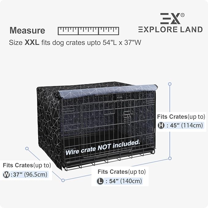 - Only Cover, without Crate - Dimension: 54 x 37 x 45 inches, universal fit for most brand 54-inch standard wire crate. Compatible with 1-door, 2-door, and 3-door wire dog crates.