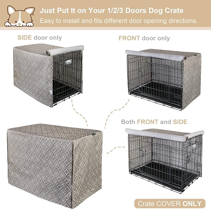 - Only Cover, without Crate - Dimension: 54 x 37 x 45 inches, universal fit for most brand 54-inch standard wire crate. Compatible with 1-door, 2-door, and 3-door wire dog crates.