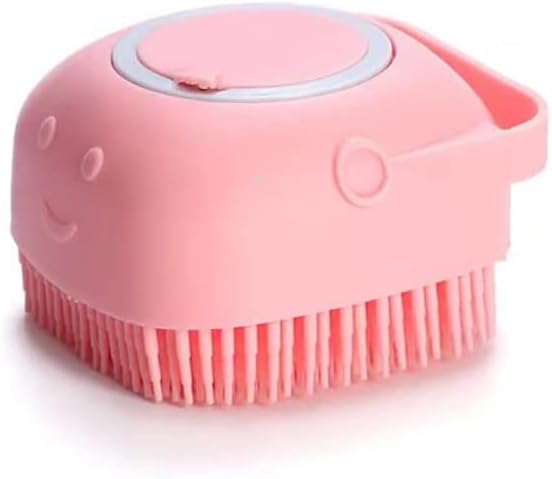 Silicone Pet Shampoo Bath Brush Puppy Cat Self Cleaning Massage Groom Brush 2 in1 (Pink)