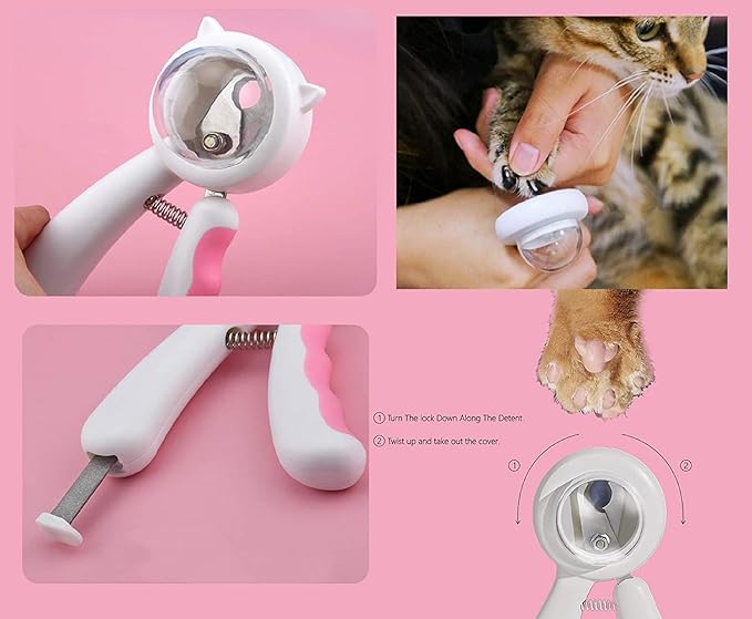 Pet Nail Clippers, Avoid Nails Flying Everywhere, Transparent Nail Storage Compartment Design, Independent Storage Files, Stainless Steel Pet Nail Clippers (Pink)