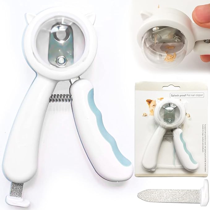 Pet Nail Clippers, Avoid Nails Flying Everywhere, Transparent Nail Storage Compartment Design, Independent Storage Files, Stainless Steel Pet Nail Clippers (Blue)
