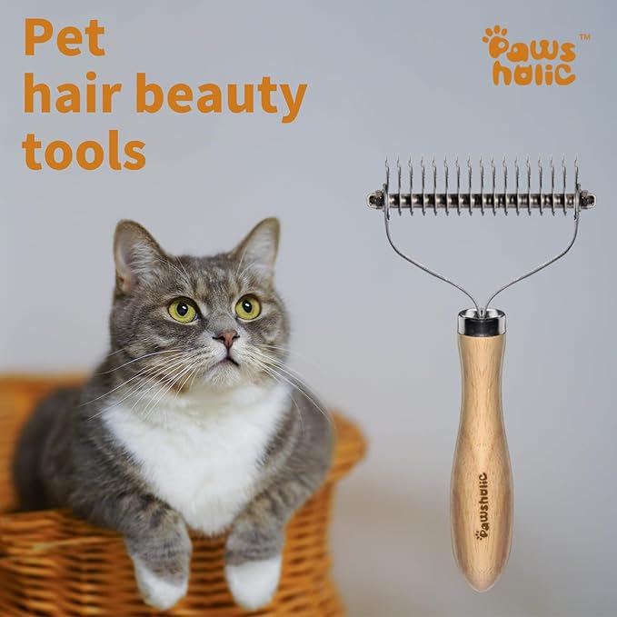 - DUAL-SIDE DESIGN: Our dematting comb is designed with two sides (Wood+Metal) to effectively detangle and remove mats and knots from your pets' coat. The solid wood handle is perfect for everyday grooming and maintenance, while the metal side is ideal for tackling tough mats and knots
