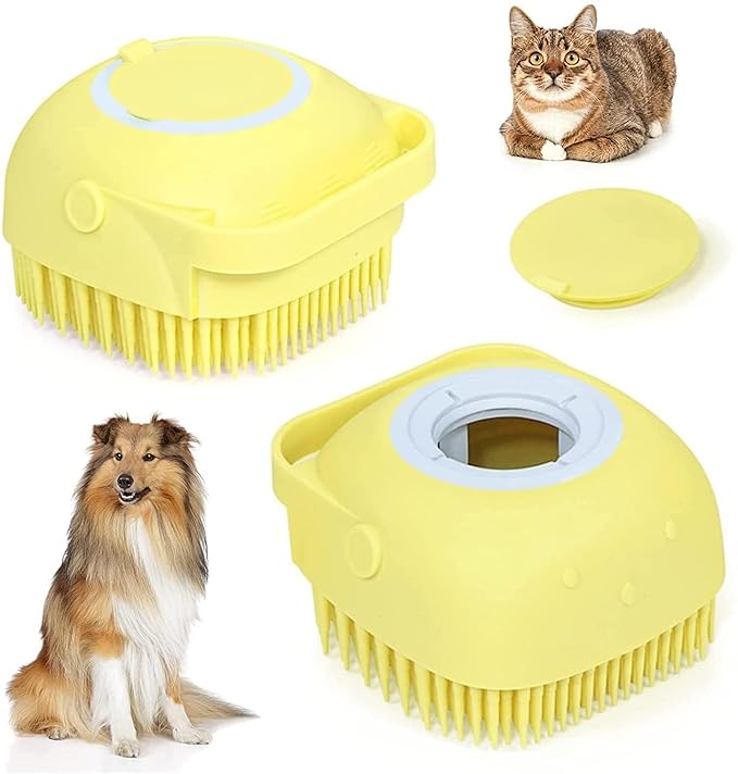 Silicone Dog Bath Brush for Grooming and Cleaning Short and Long-Haired Dogs and Cats (Yellow&Pink)