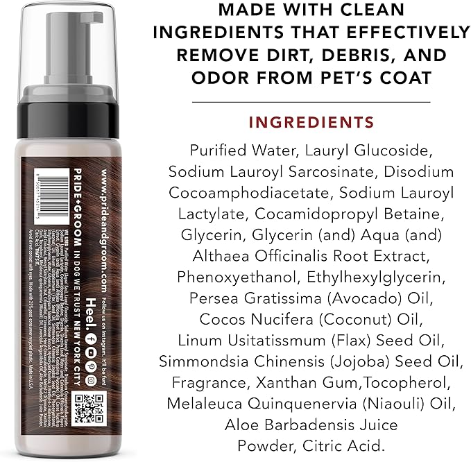 Pride and Groom The Mane Tame Waterless Dog Shampoo – Foaming Dry Shampoo for Dogs and Cats Made in USA for a Rinse Free Cleanse and to Eliminate Odor in Between Baths On-The-Go – 7.1 fl oz