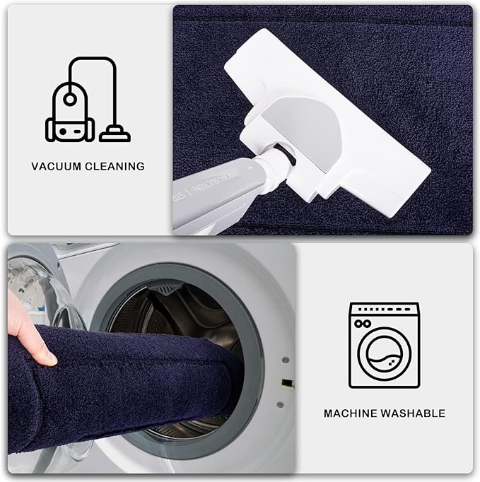 - EASY TO CLEAN: The stain and fade resistant polyester carpet surface can be easily clean by vacuuming. For a deeper clean, machine wash separately in cold water, using mild detergent. Tumble dry, low heat. Do not use bleach or fabric softener. Our door mat will not fade or wear out and will remain like new even after repeated washing.