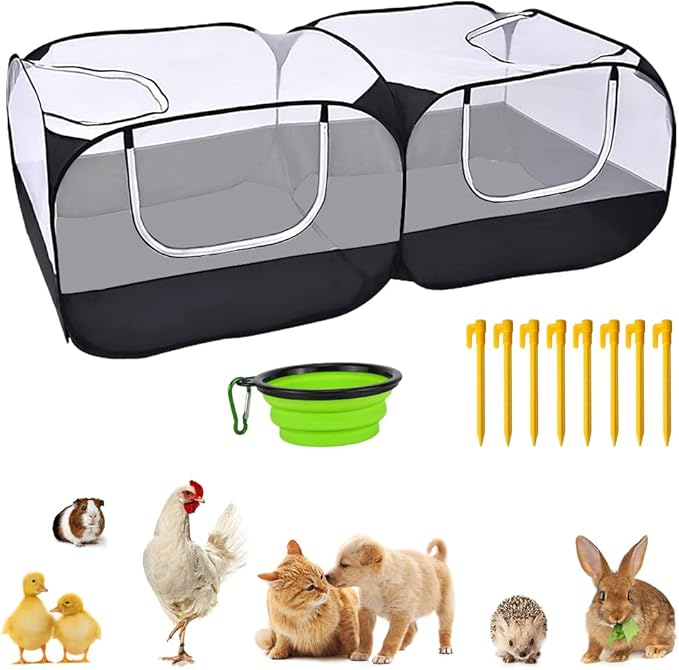 - 【Comes with storage bag and bowl】 Perfect for travel, camping, picnic, or other indoor and outdoor activities. Suitable for outdoor rising such as chicken, duck, rabbit and small cats and dogs.