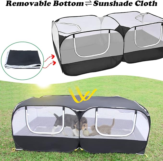 - 【Upgraded Pet Playpen】Removable design at the bottom,suitable for indoor and outdoor use.Removable Bottom put on top of the tent also be used to shade the sun to prevent heat stroke in pets.It is ideal for dogs, cats, isolating an injured pet, or introducing a new pet.