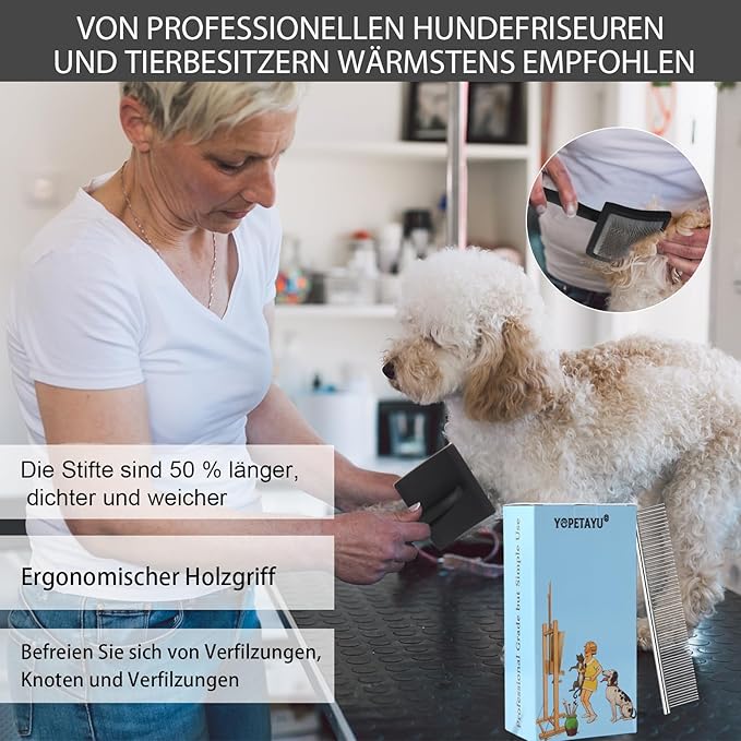 - [Highly Recommended] Made for professional groomers with a cushioned pad that retracts the soft and scratch free pins to grasp tangles and knots. Our brush has denser, and softer pins to save time and energy during pet grooming. when compared to the competition – each pin is approximately 1 inch long.