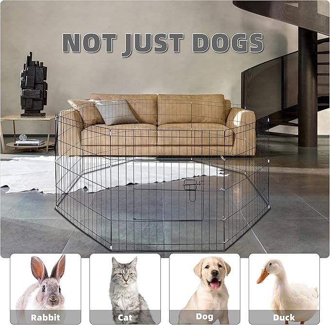 - Indoor/outdoor portable pet pen creates with 8 connected panels, thumb snaps for connecting the ends together