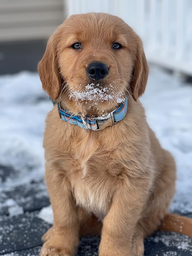 Lionet Paws Boy Dog Collar, Comfortable Adjustable Cute Blue Plaid Collar with Metal Buckle for Male Dogs Gift, Medium, Neck 13.5-22 inches