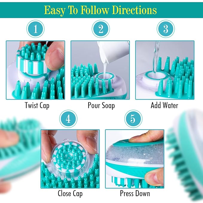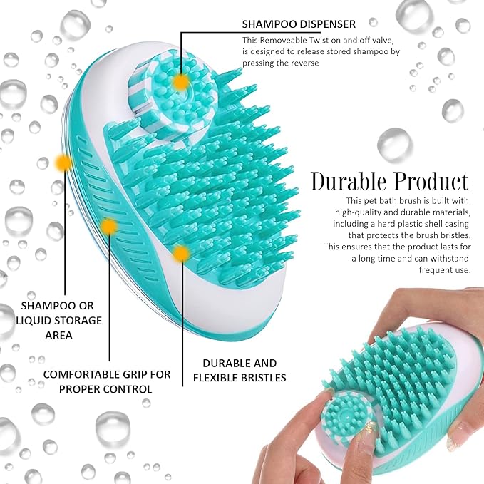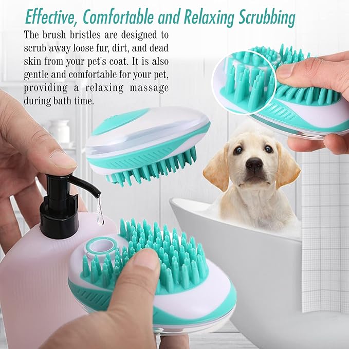 - Effective, Comfortable and Relaxing Scrubbing: The brush bristles are designed to scrub away loose fur, dirt, and dead skin from your pet's coat. It is also gentle and comfortable for your pet, providing a relaxing massage during bath time.