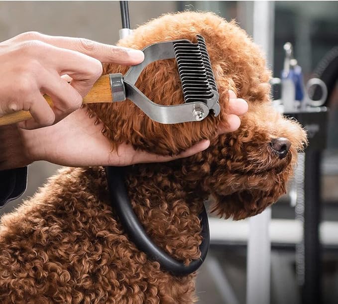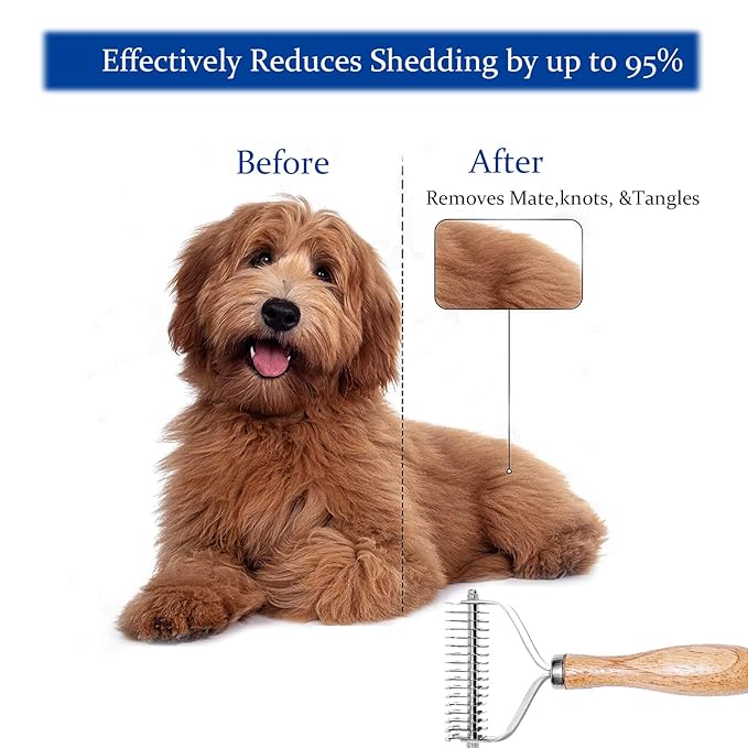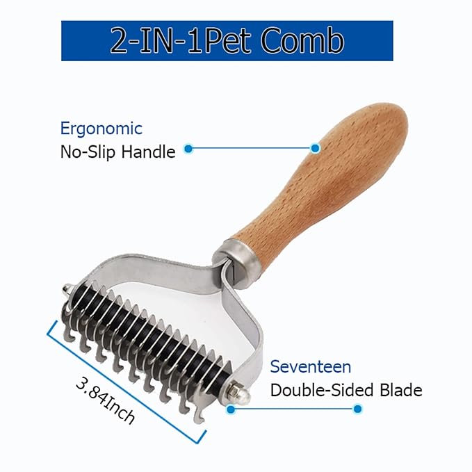 - ✅【Sharpe Blade】A 2-sided sharp stainless steel blade can cut mats and tangles effectively, avoiding pulling or hurting your pet when detangling and deshedding.
