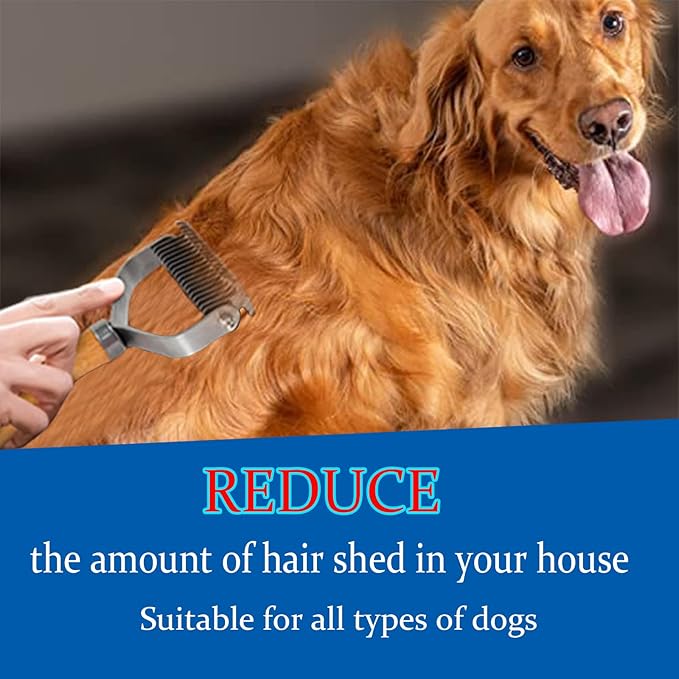 - ✅【Double-wide Undercoat Rake for Dogs 】17 double-sided blades, safe and durable.