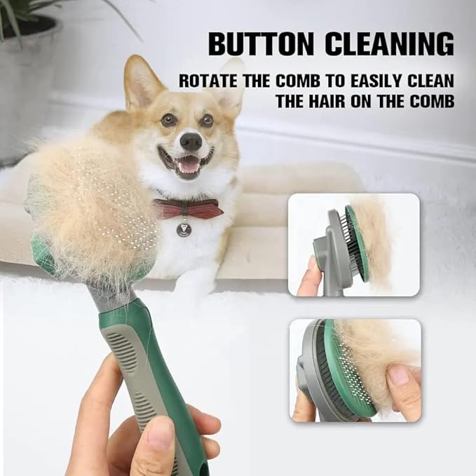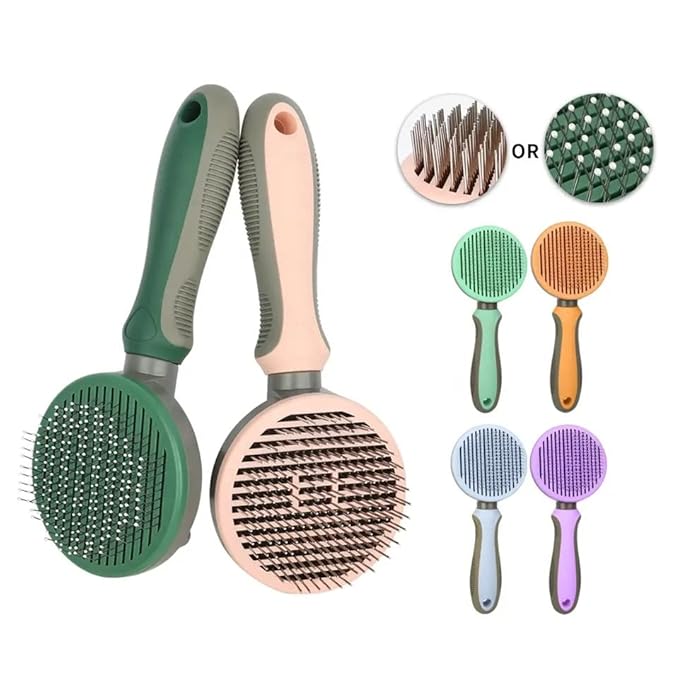 Self Cleaning Pet Pin Brush Cat Dog Grooming Slicker Brush Color Silver Round Curved Needle for Shedding