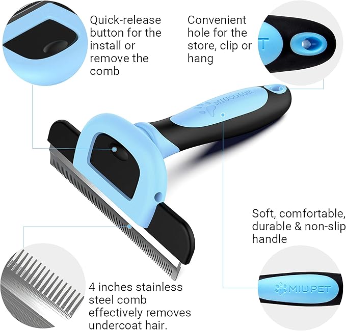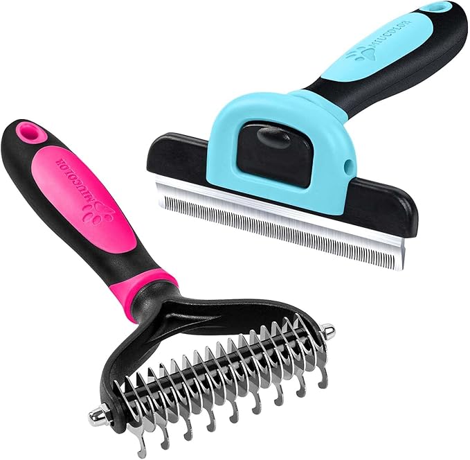 MIU COLOR Pet Grooming Brush, Deshedding Tool for Dogs & Cats(Blue) & MIU COLOR Pet Grooming Brush, 2 Sided Undercoat Rake for Dogs & Cats(Pink)