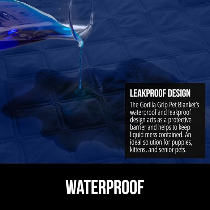 Gorilla Grip 100% Waterproof Dog Blanket, Pet Friendly Sofa Throw Essential for Small Pets, Dogs, Cats, Tear and Slip Resistant Leakproof Couch Cushion Cover for Indoor Furniture, 30x70 Navy