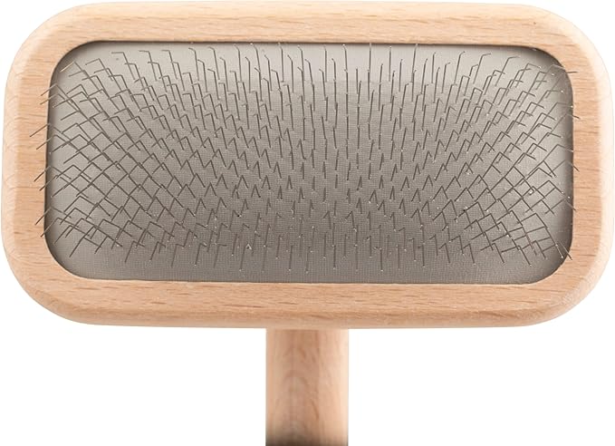 - MARK SERIES - Mark Slicker brush by Chris Christensen, maker of quality products for dog shows, show dog grooming. Beautifully handcrafted Beech wood slicker brush with high grade steel pins for less coat damage. Ultra-soft, extra flexible cushion with base of one fourth inch foam. Shape and contours of the handle do all the work for you instead of wrist being at a constant angle. Less stress for groomer and animal.