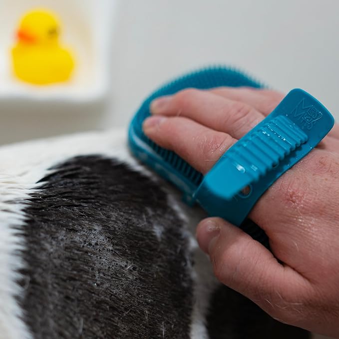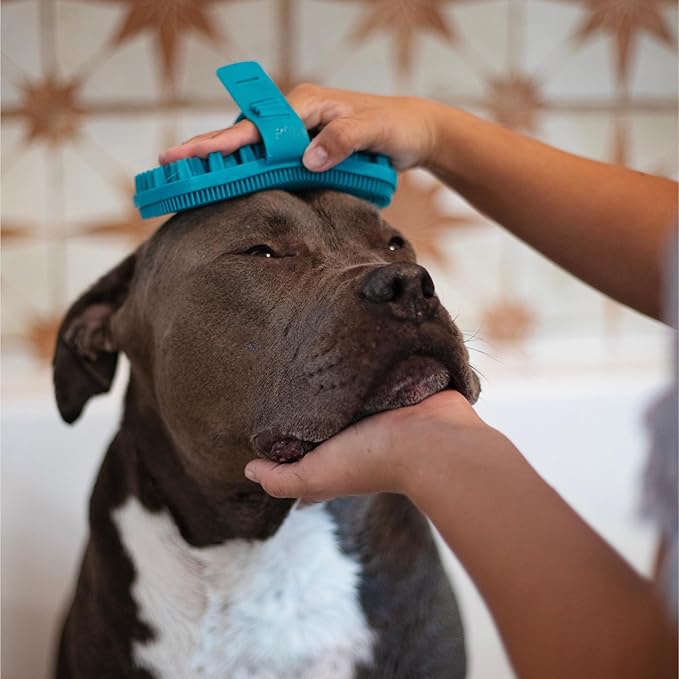 - GENTLY GROOM, BATHE, MASSAGE – Groom, scrub, and massage your mutt with this silicone grooming brush. This dual-sided brush is the perfect way to gently massage, scrub, or remove fur from your mutt. Use with or without water and soap. Ideal for every travel kit or everyday grooming needs, washing, and paw scrubbing. Use for dogs, cats, horses, or any pet that needs grooming.
