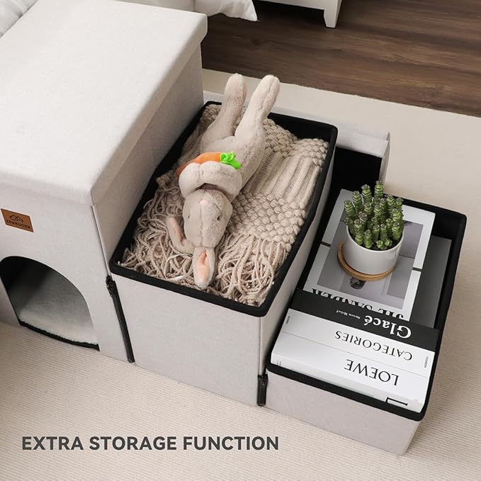 - 3-IN-1 DOG STAIRS AND CONDO: Zerbuger pet stairs not only provide a stable and cozy place for your pet to rest, but also serve as a convenient 54QT large storage area for your pet's clothes, toys, or any other supplies. Our pet steps are covered with removable lids, Every steps are designed as storage boxes.